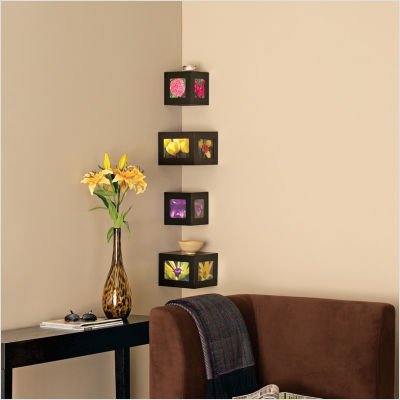 - Set of 2 Wall Corner Shelves w/ Photo Openings in Wenge